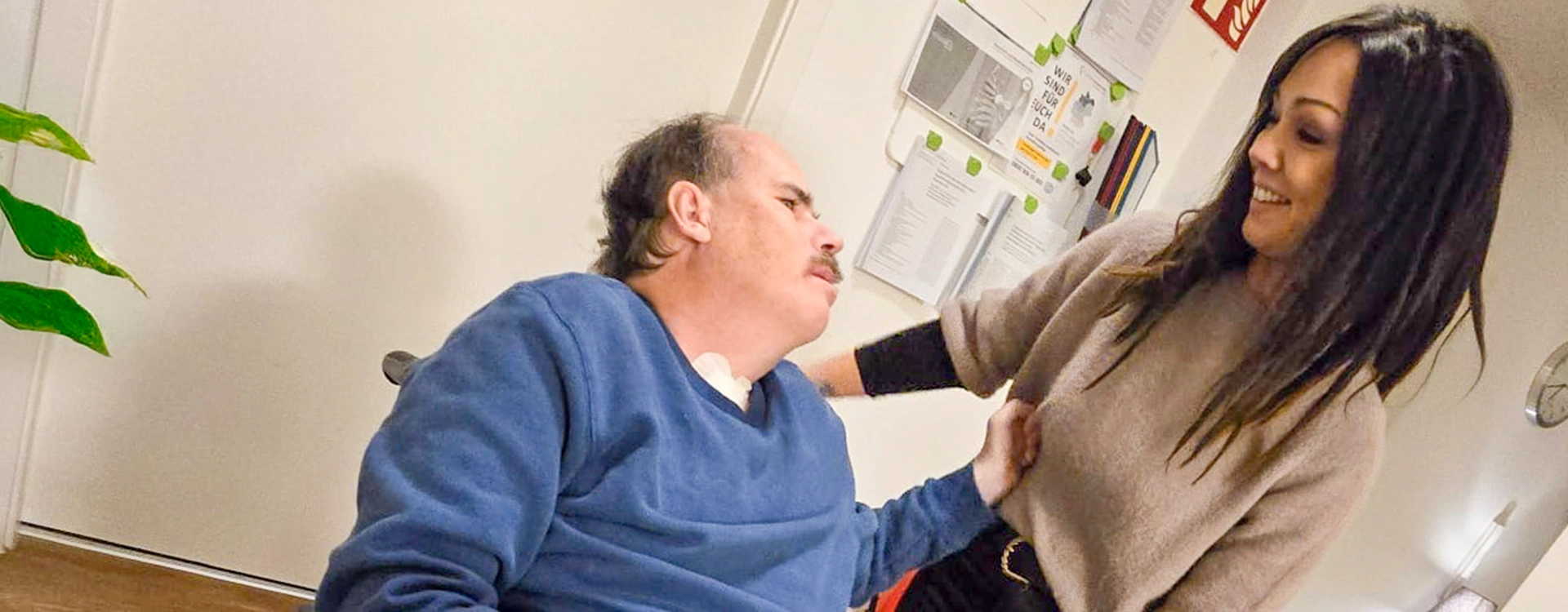 Wie schade, dass Uwe die WG nun schon verlassen muss. Denn er hat sich bestens eingelebt und ist allen ans Herz gewachsen. Aus dem Nichts ruft er: „Ich mag Camilla!“ „Und ich mag dich, Uwe“, erwidert Camilla. „Wir sind schon ein gutes Team und haben viel geschafft. Ich werde ihn sehr vermissen.“ Und das nicht nur, weil er ihr ein bisschen bei den Büroarbeiten unter die Arme gegriffen hat, mal die Zettel aus dem Kopierer geholt oder Zettel eingeheftet hat. Nein, Uwe hat die ganze WG auf Trab gehalten. Aber der sympathische Bewohner hat eben auch noch sein eigentliches Leben mit den Bezugspersonen, die ihm wichtig sind. Seine Freundin Katharina zum Beispiel, mit der er jeden Abend telefoniert hat. „Deswegen haben wir zugesehen, dass wir die Dekanülierung so schnell wie möglich hinkriegen“, betont Camilla.